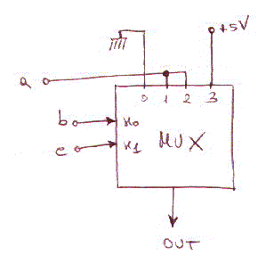 Cioe' utilizzando un MUX 4 a 1 la funzione M puo' essere implementata come in figura: