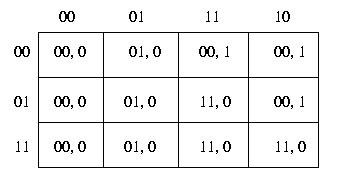 ottenendo l'automa minimale descritto dalla seguente tabella di flusso.