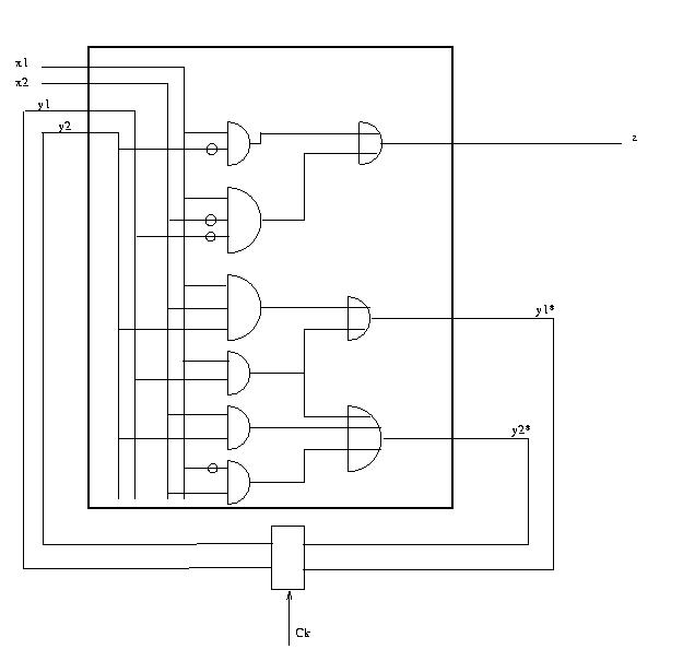 Da cui otteniamo la seguente rete sequenziale sincrona: