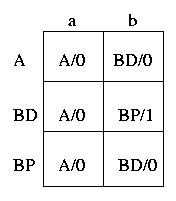 e gli stati interni (la codifica di quelli di uscita e' ovvia). (Da ricordare, anche se non lo facciamo, come in realta'