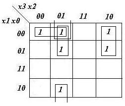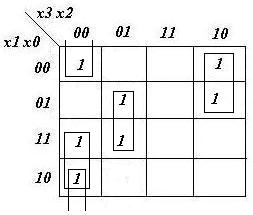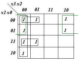 z0= x1x3'x2' + x0'x3'x2' + x0x3'x2 + x1'x3x2'