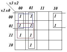 z1= x1'x0'x3' + x1'x3'x2 + x1'x3x2' + x0'x3'x2
