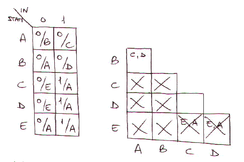 Proviamo a semplificare l'automa a stati finiti. Alla fine del processo di semplificazione