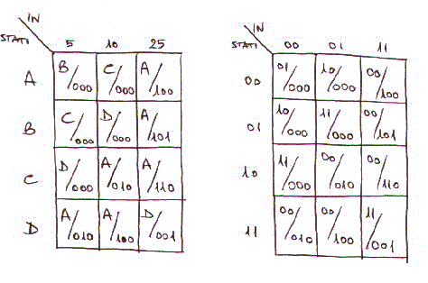 Descriviamo l'automa a stati finiti. Gli ingressi sono: