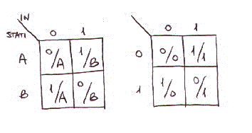 Realizziamo la parte combinatoria. Le mappe di karnaugh saranno: