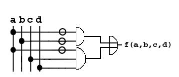Fornire un circuito combinatorio minimale a due livelli SP che calcoli la funzione Sigma4(0,1,2,3,7)