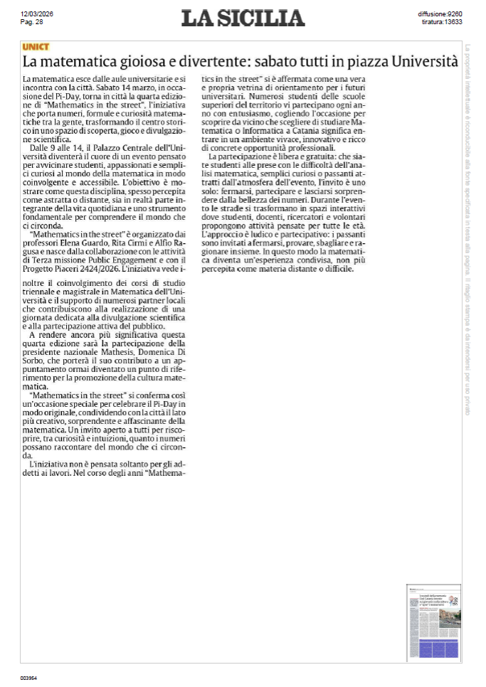 occasione del Pi-Day, torna la IV edizione di MATHEMATICS IN THE STREET!